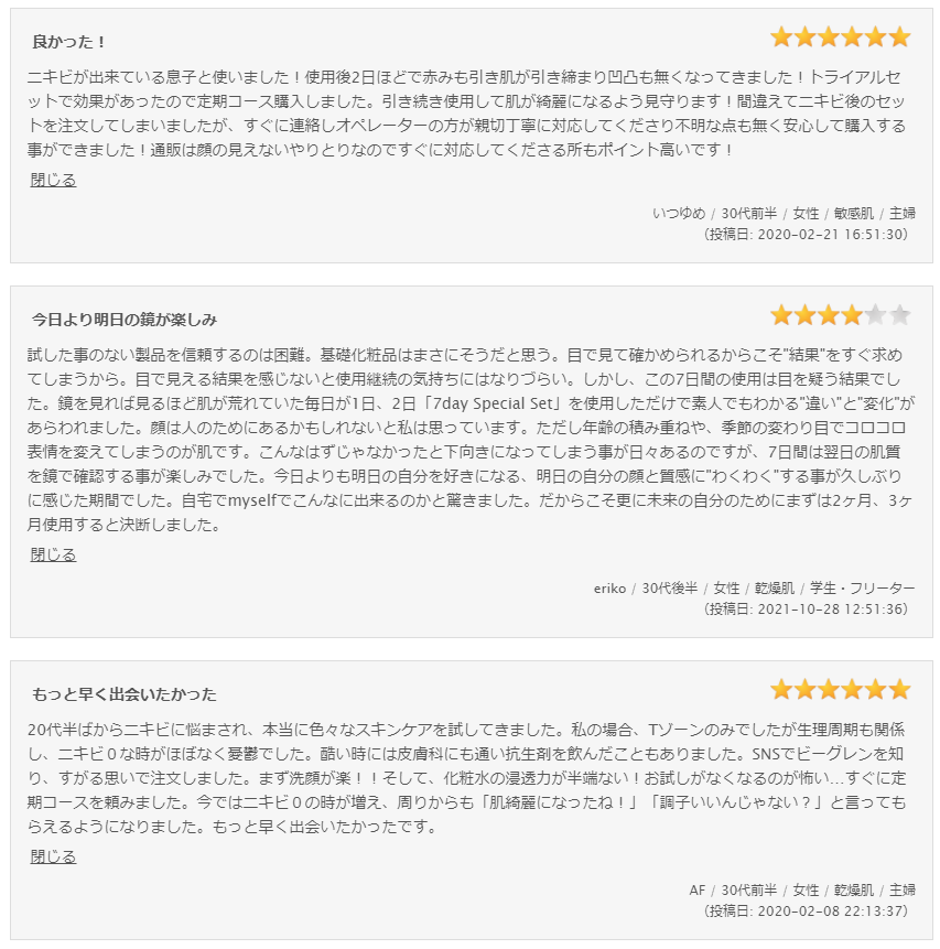 ビーグレンのいいところは、購入サイトでユーザーの生の声が確認できるところです🙌