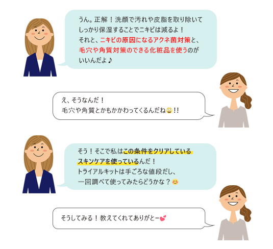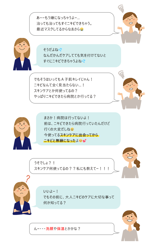 と、以前はニキビ肌トラブルに悩まされていたA子が
