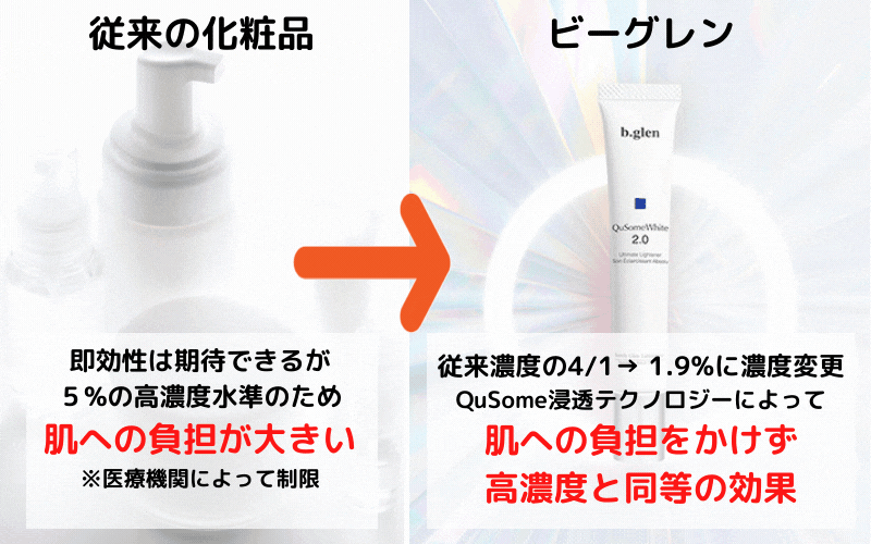 その分、肌への負担や副作用が多く出やすいのが問題ですが、QuSomeホワイト2.0はこの問題も難なくクリア。