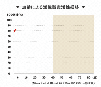 若い頃は活性酵素を抑えるだけの、抗酸化力を持っていますが、年齢を重ねると減少していき急激なサビ化※に見舞われます。
