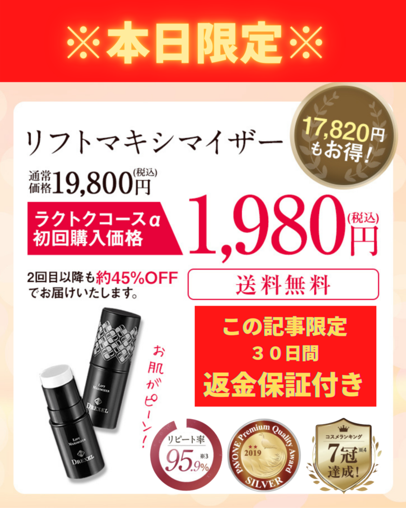 最近ではリフトマキシマイザーの噂を聞きつけて、転売が横行し始めているので公式サイト以外で購入すると損してしまうことに・・・