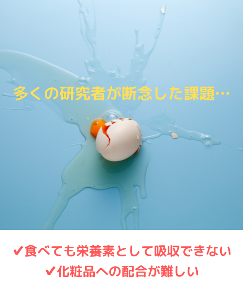 東京大学と東京農工大学の共同研究により、この「卵殻膜」が化粧品の成分として配合されるようになる時代がきたんです!