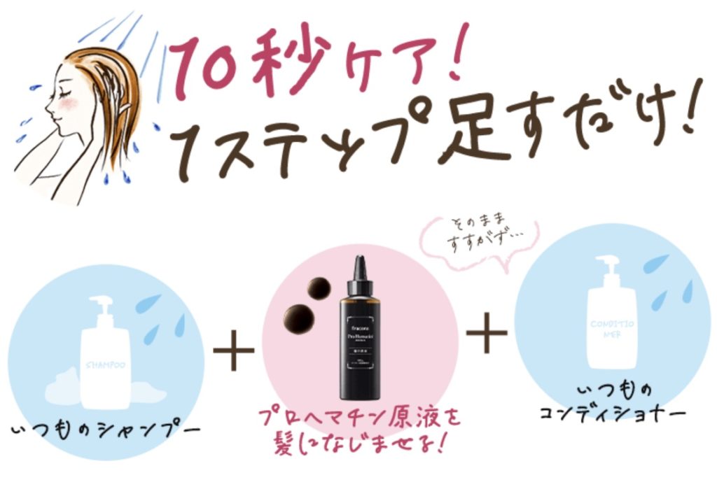 毎月のトリートメントやサロンでのメンテナンス代を繰り返してましたが、プロヘマチン原液使い始めてから手櫛でも引っかかっていた私の髪がサラサラに!!思わず触りたくなる髪になれてうれしい!今ではたまに、わざと髪を揺らして歩いています(笑