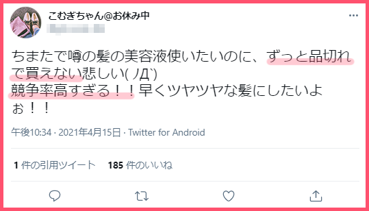 口コミで話題になっていたこれを使ってから、つやが出てまとまりもよくなって嬉しい。あと柔らかさも出てきてなお良しです!