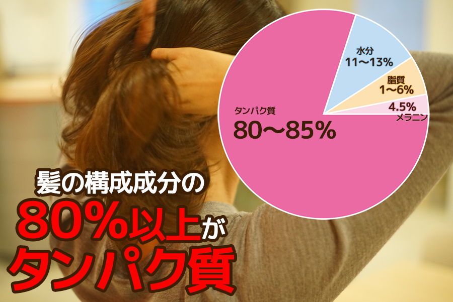 この、髪の毛を作っている成分の80%以上がタンパク質!なのですが、